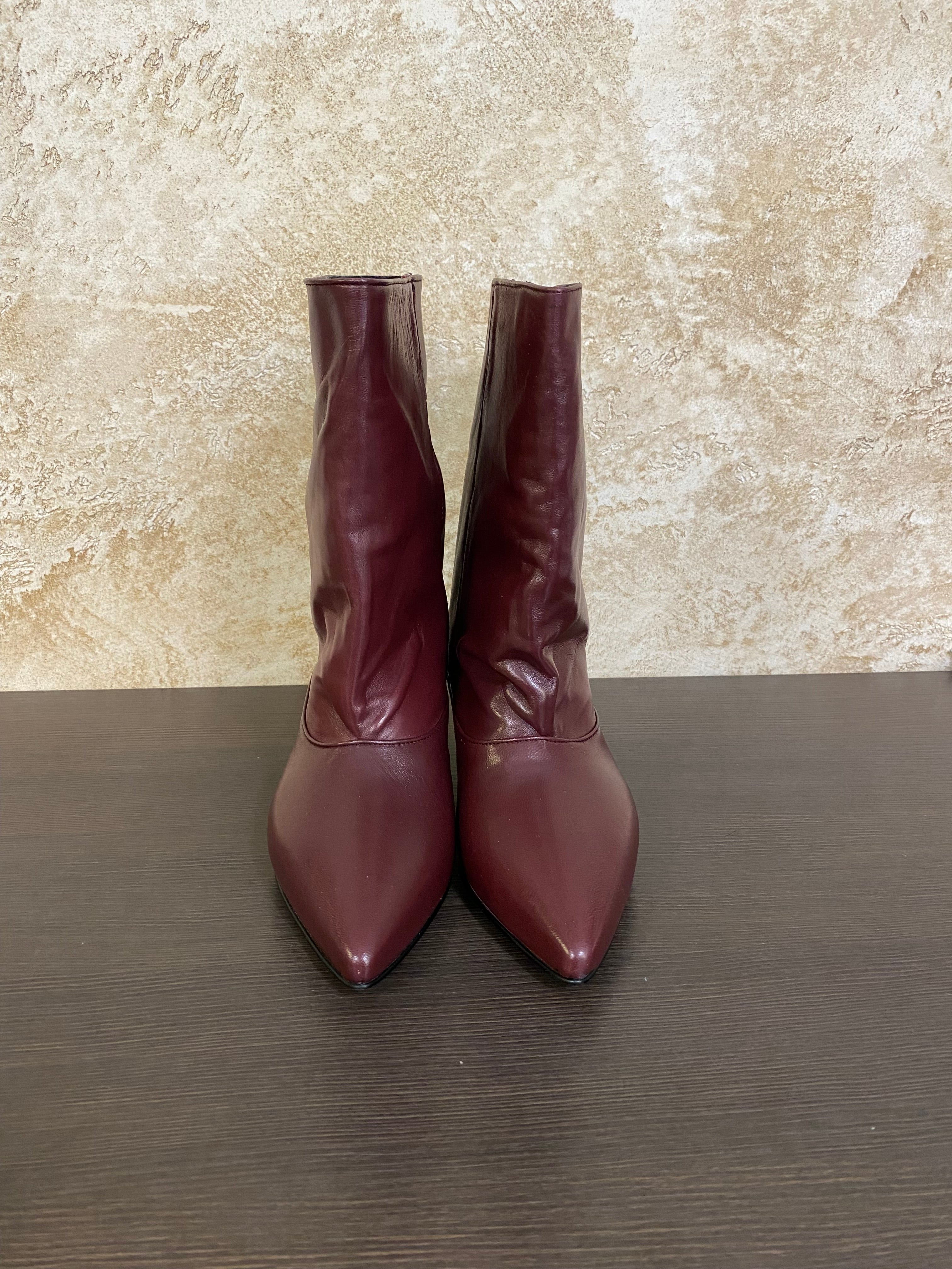 Stivaletto con tacco basso a stiletto. Lo stivale arriva al polpaccio ed è dotato di un gambale particolarmente ampio, molto di tendenza in questa stagione. La pianta è bella allungata e termina con una punta che sfina il piede. Bello da portare con un jeans largo o stretto dentro al pantalone oppure sotto ad un vestito. Vestibilità regolare e numeri dal 37 al 40.