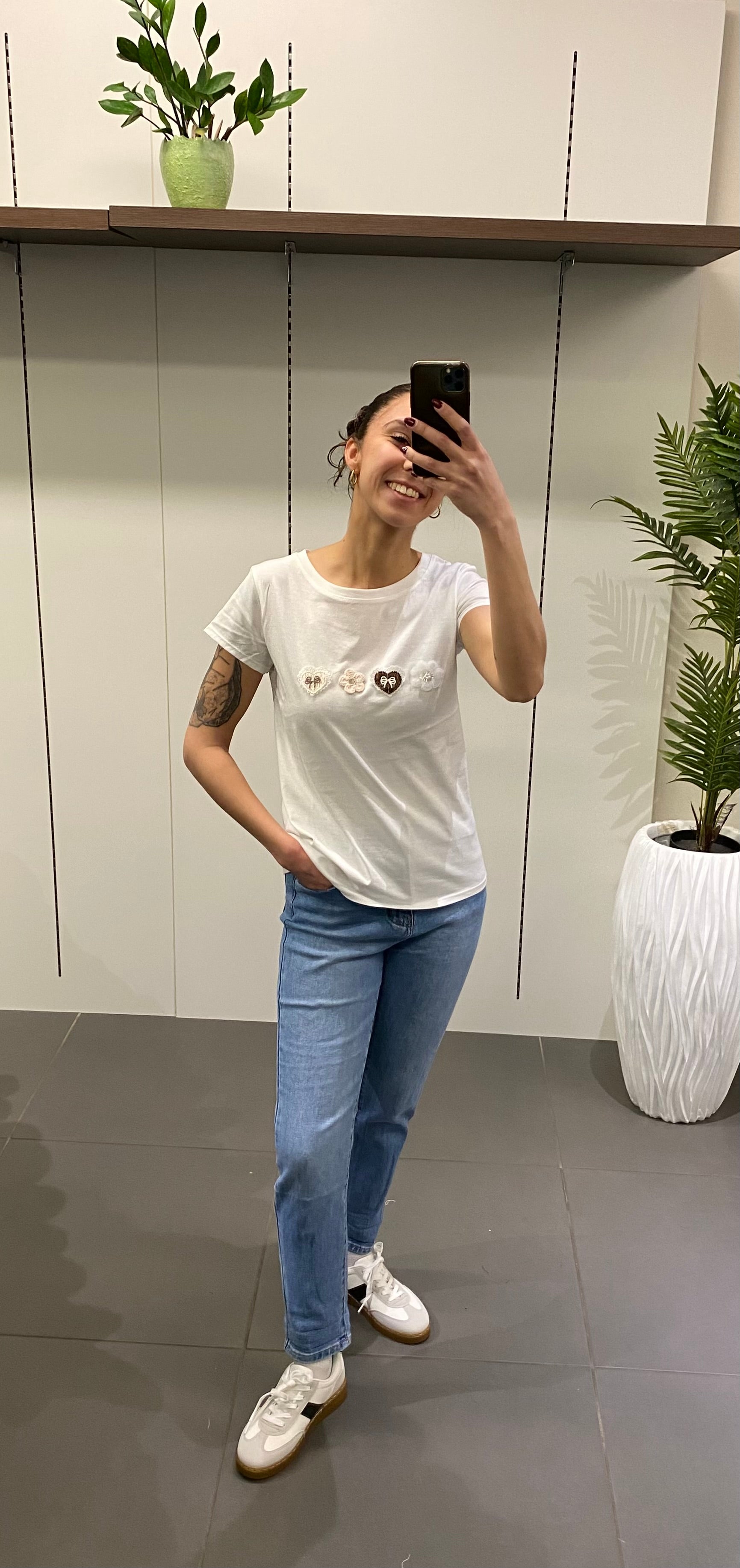 -T shirt basica in cotone con ricami sul davanti
