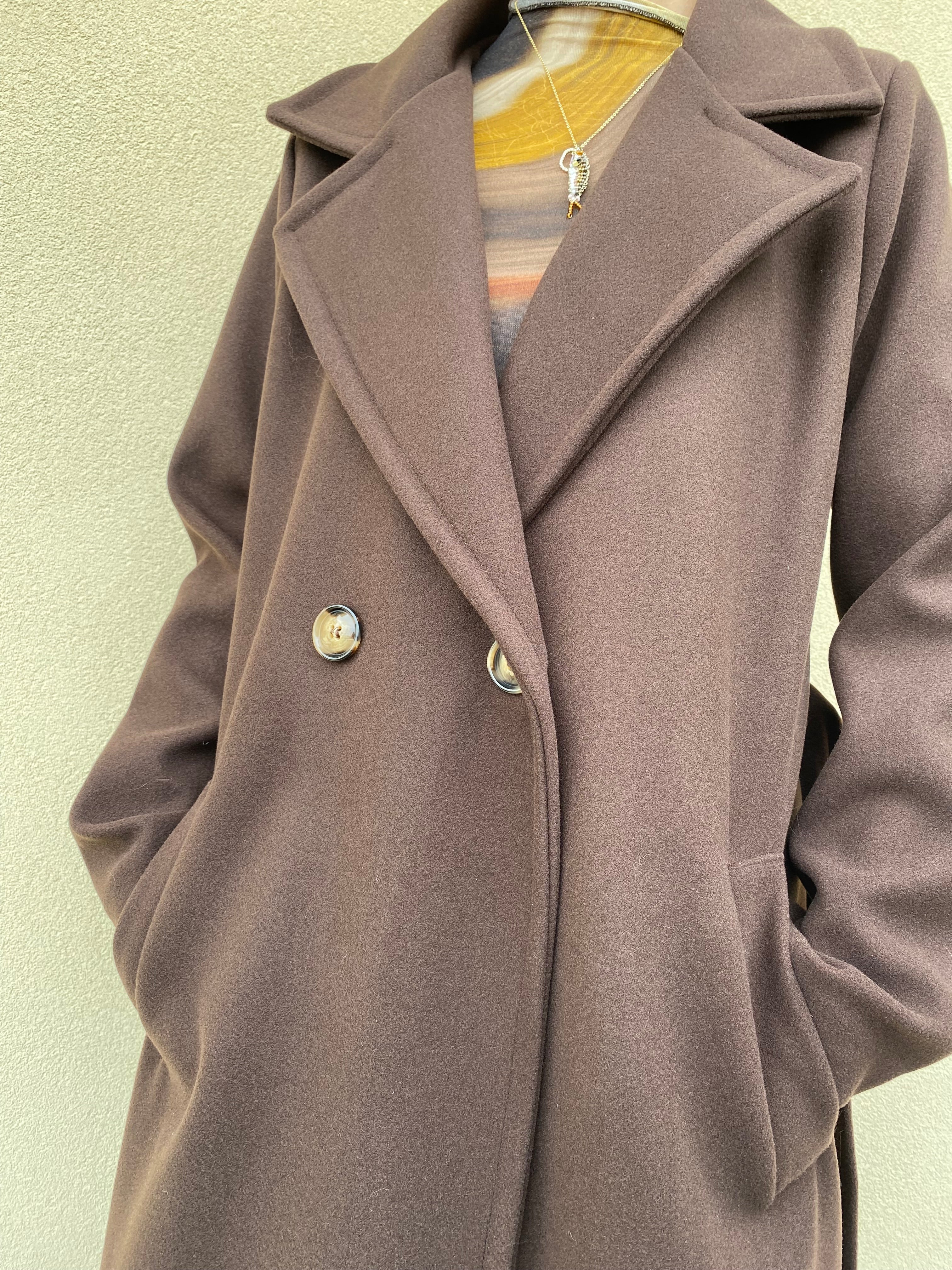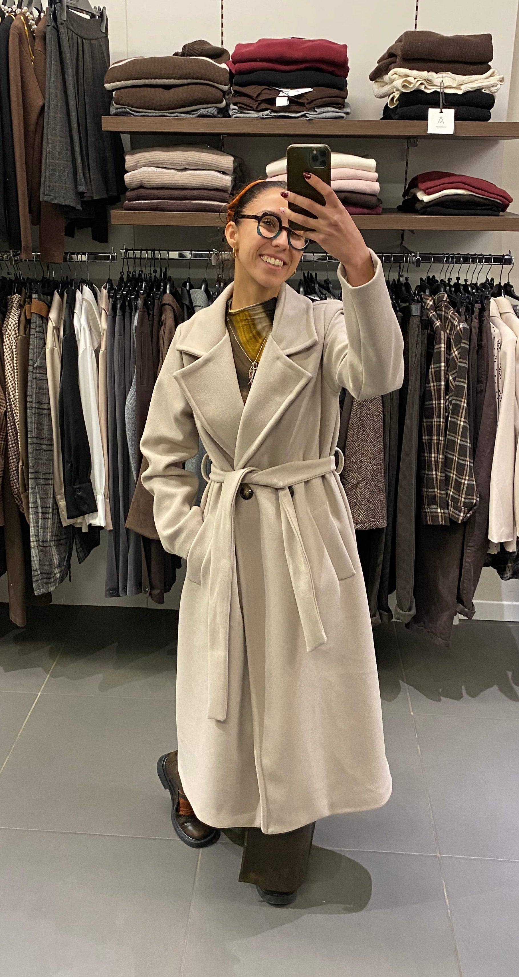Bellissimo cappotto media lunghezza(arriva a coprire il polpaccio) in tinta unita con cintura in tessuto tono su tono. La chiusura del cappotto è doppiopetto con due bottoncini sul davanti. Bello da portare in versione più elegantina o piu casual per dare maggiore grinta ad un look sportivo. Taglia unica e vestibilità da una 40 ad una 46.