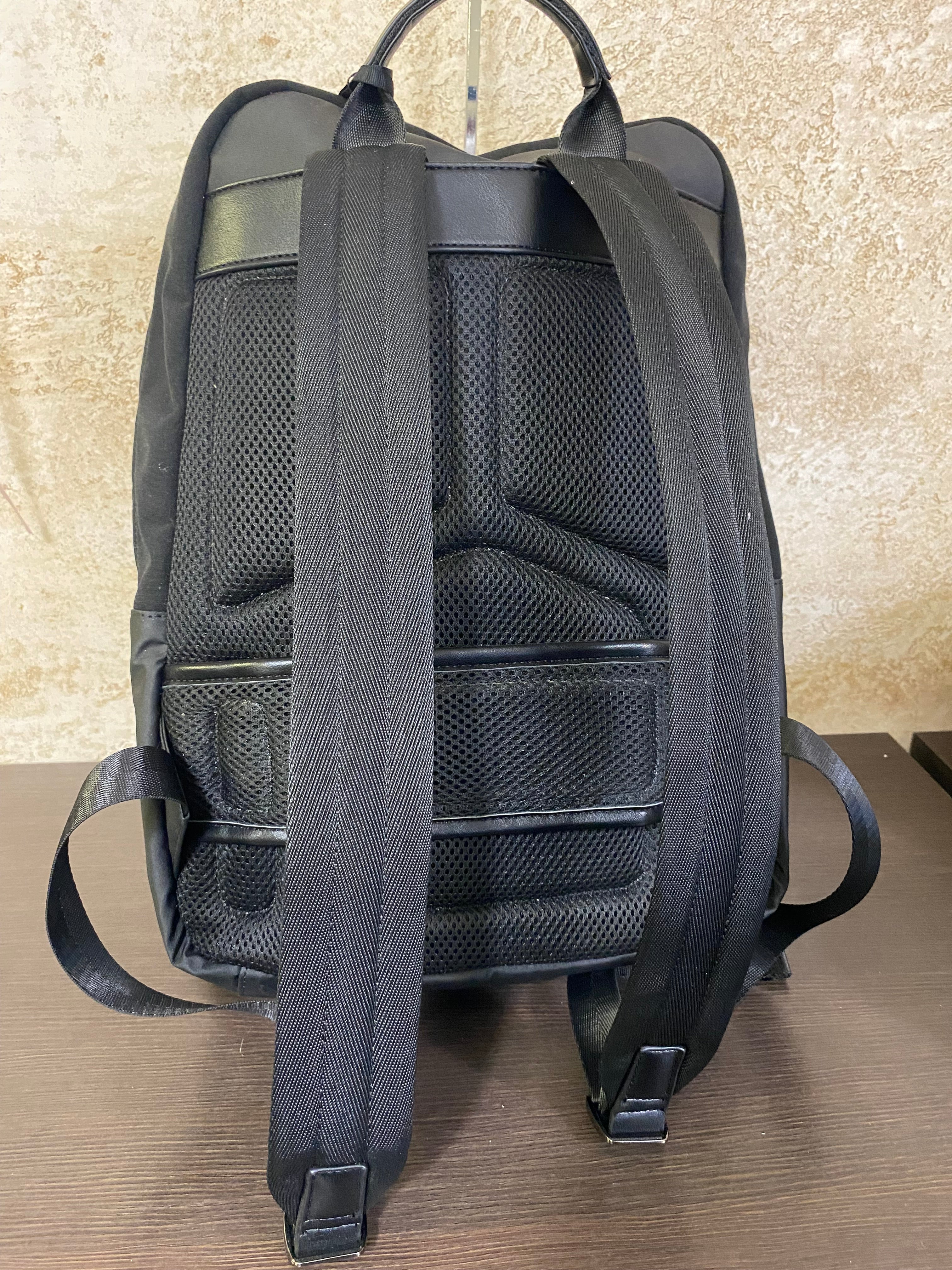 Zaino impermeabile nero, tasca grande con cerniera nera, sono presenti altre sue tasche davanti in tessuto impermeabile sempre con cerniera di colore nero, imbottitura sul retro nella parte della schiena e con le spalline regolabili