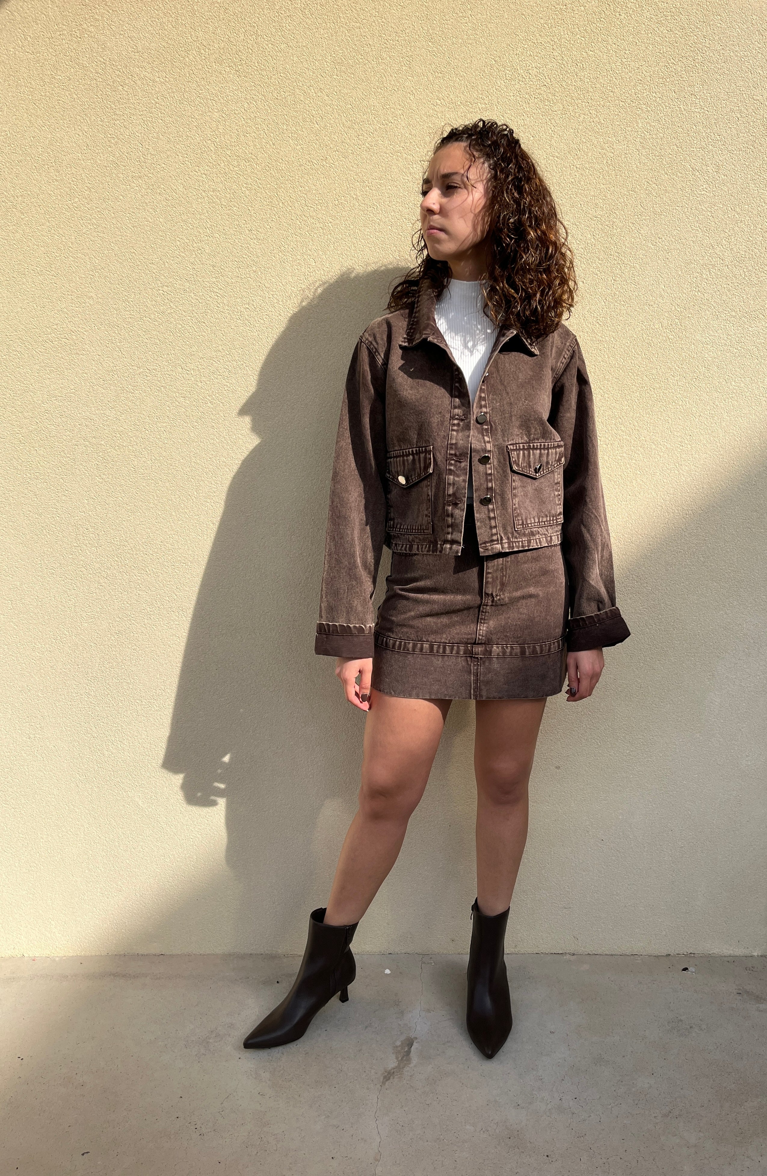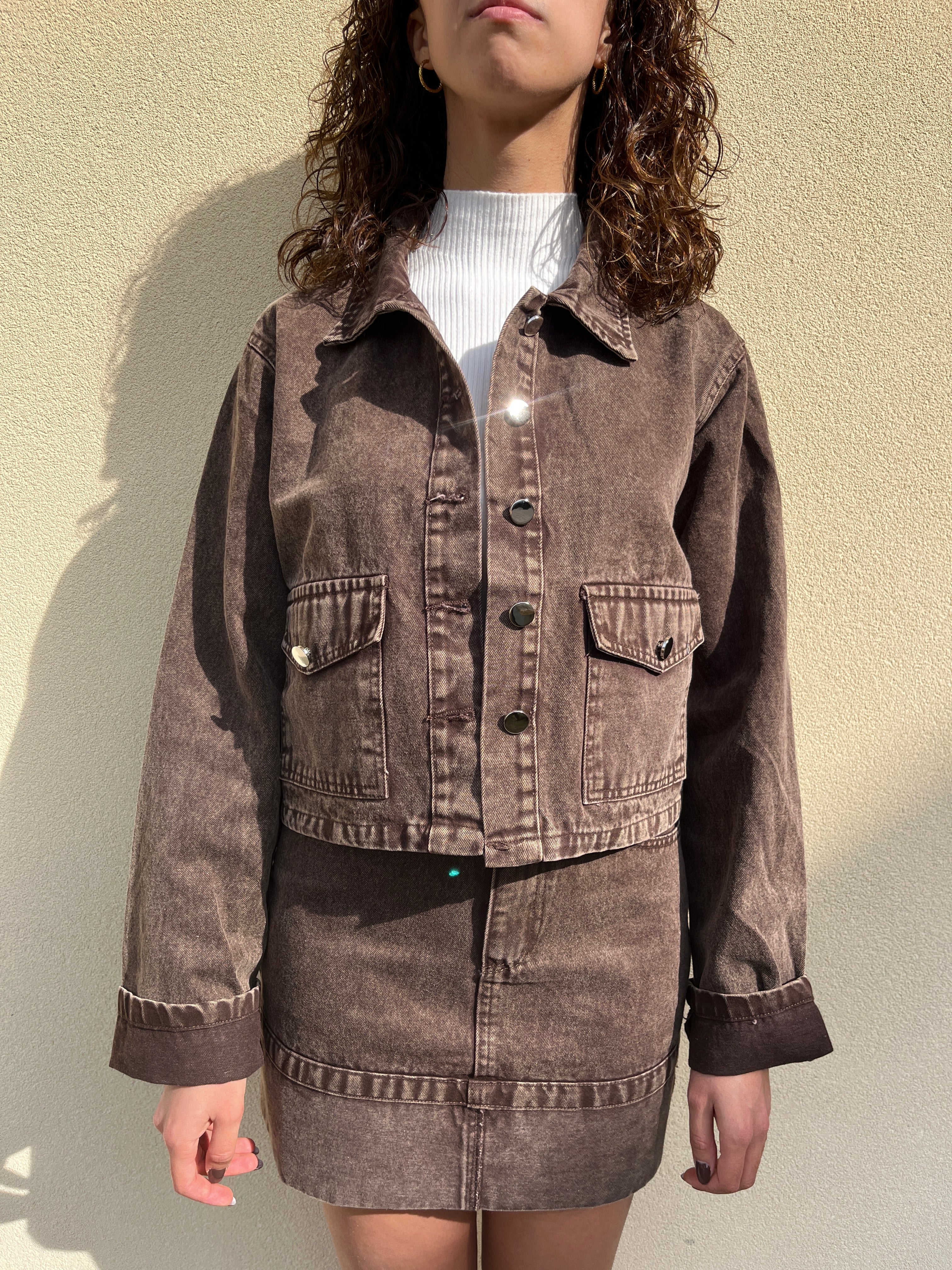 Giubbetto in jeans dritto che veste morbido non troppo sfiancato, taglia unica che veste dalla taglia 40 fino alla 46, due tasche davanti con bottoni argento.