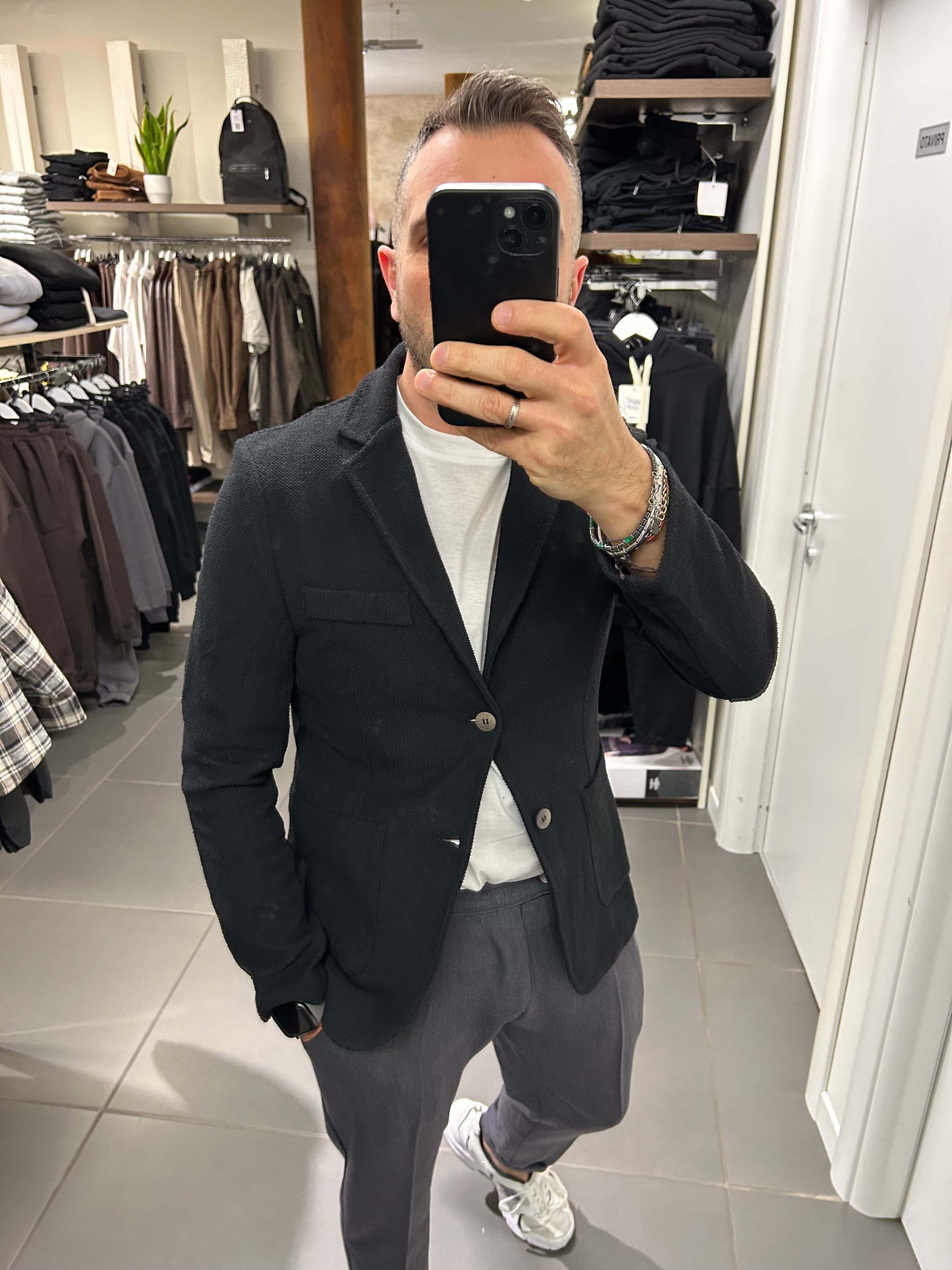 Giacca F.K vestibilità slim, due tasche e con due bottoni su tono