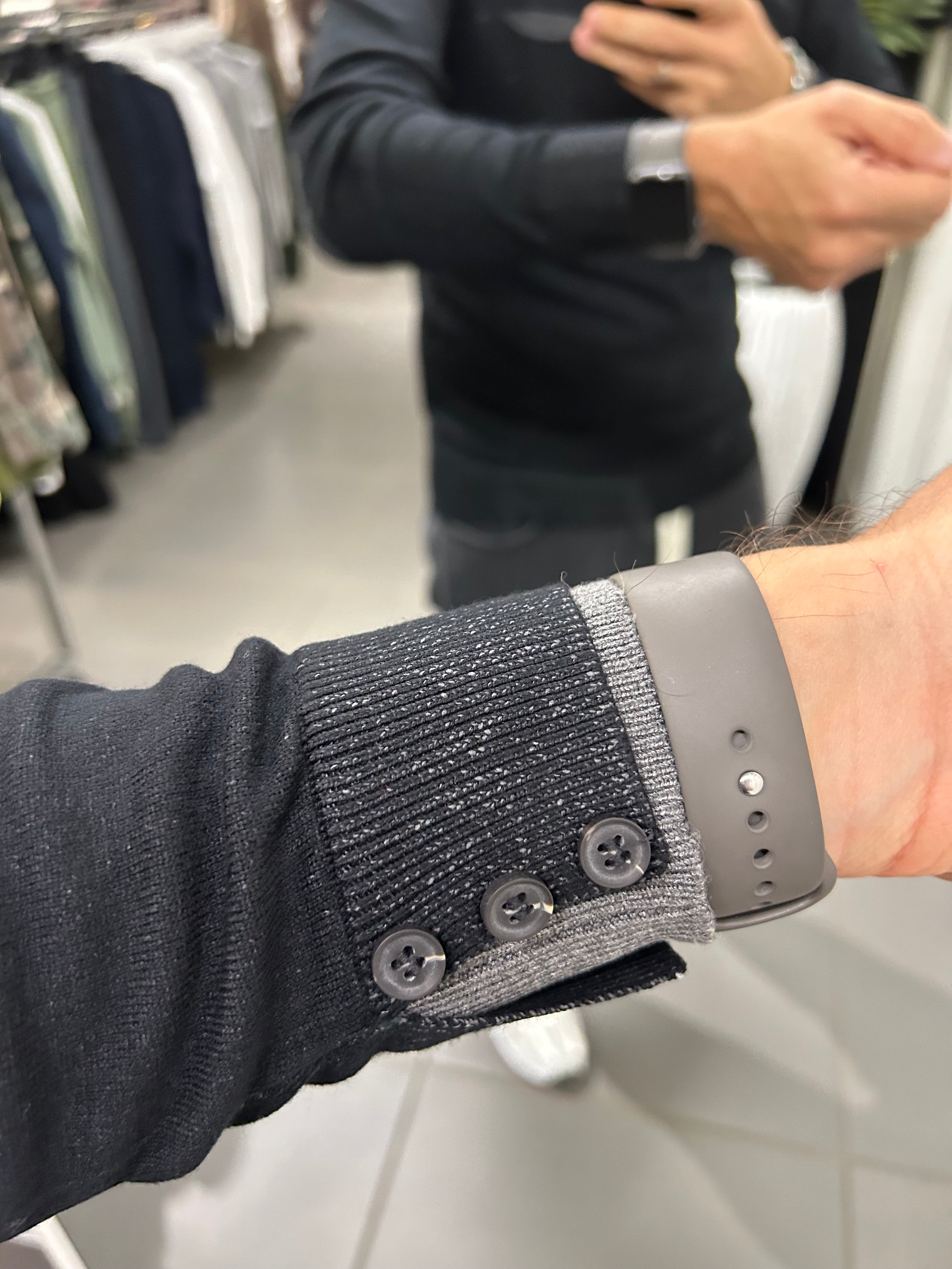 Maglia girocollo Taschino in contrasto colore grigio, toppa sui gomiti in co tessuto colore grigio e doppio polsino nella manica