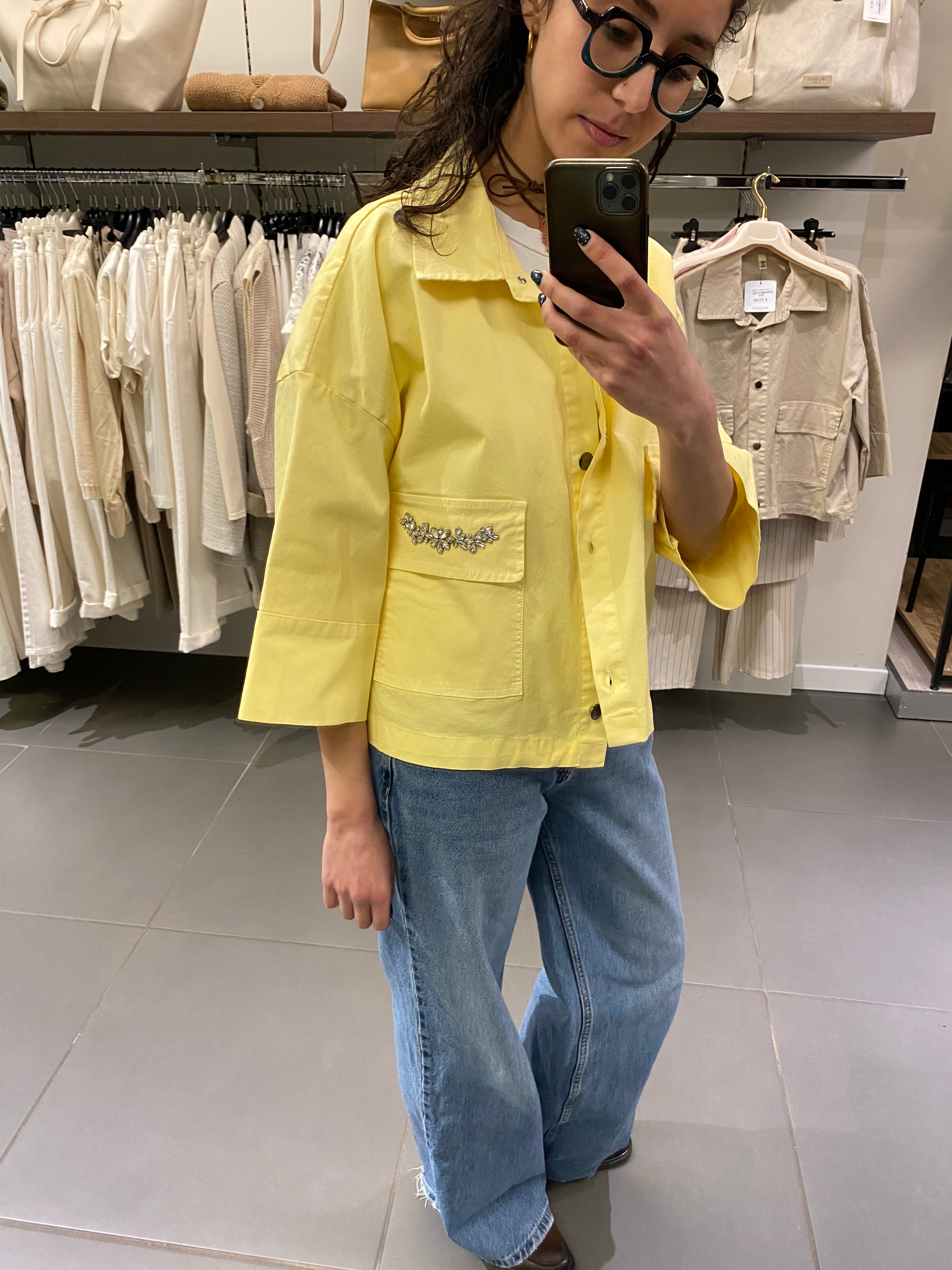 -Tasche altezza petto belle grandi con patine di cui la sinistra con applicazioni a gioiello