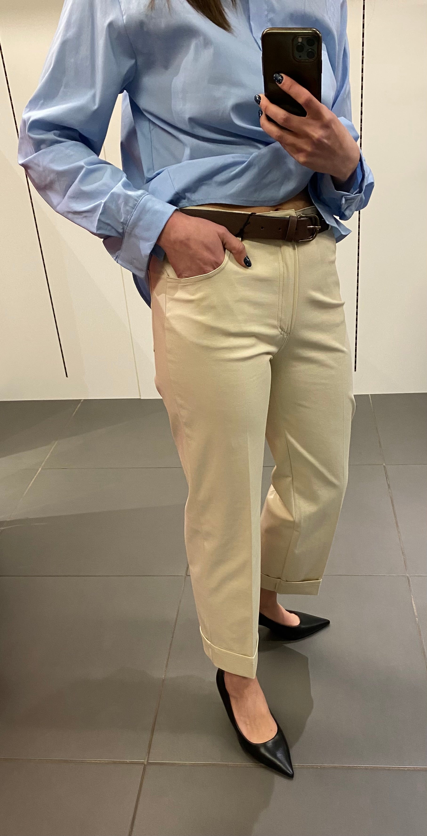-Chiusura con zip e bottone e passanti per cintura